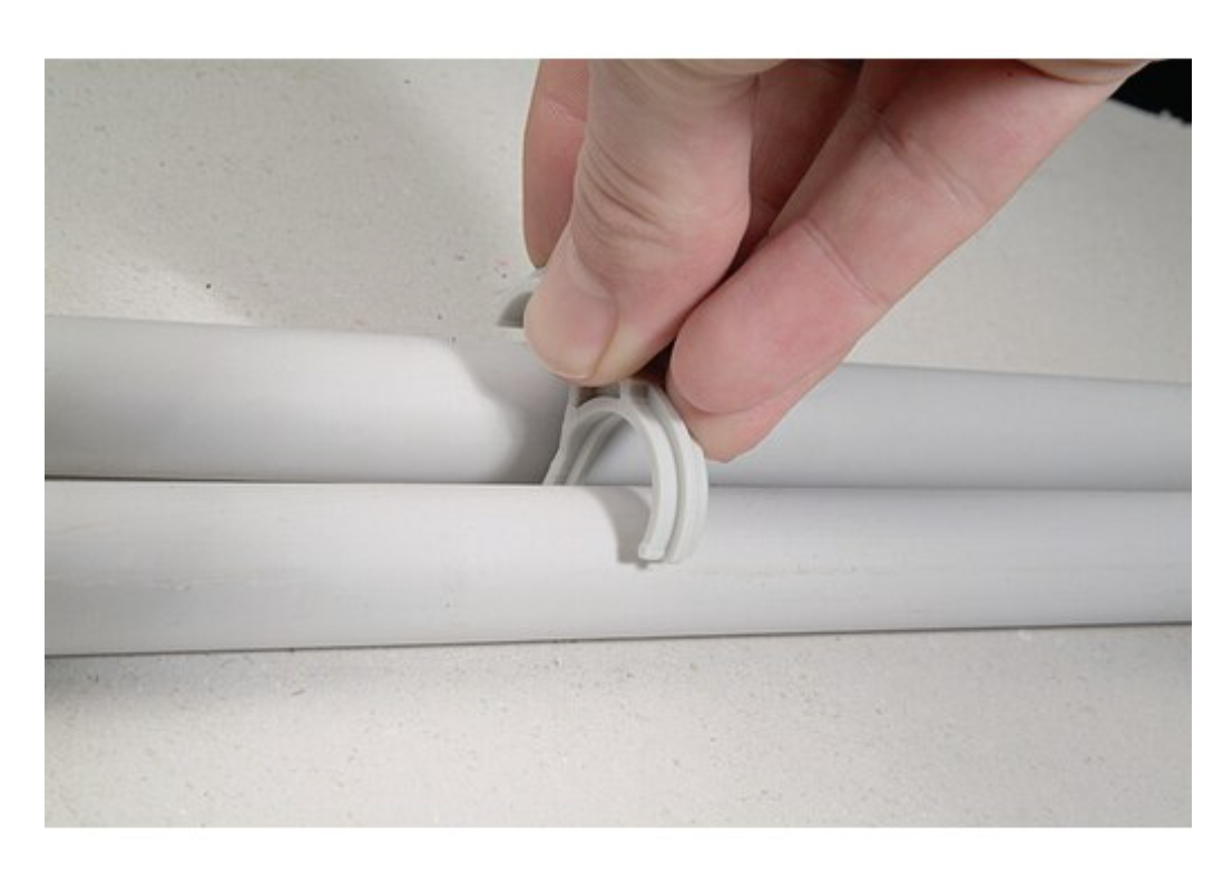 Deux lignes parallèles de diamètres différents sont maintenues par des supports élastiques.