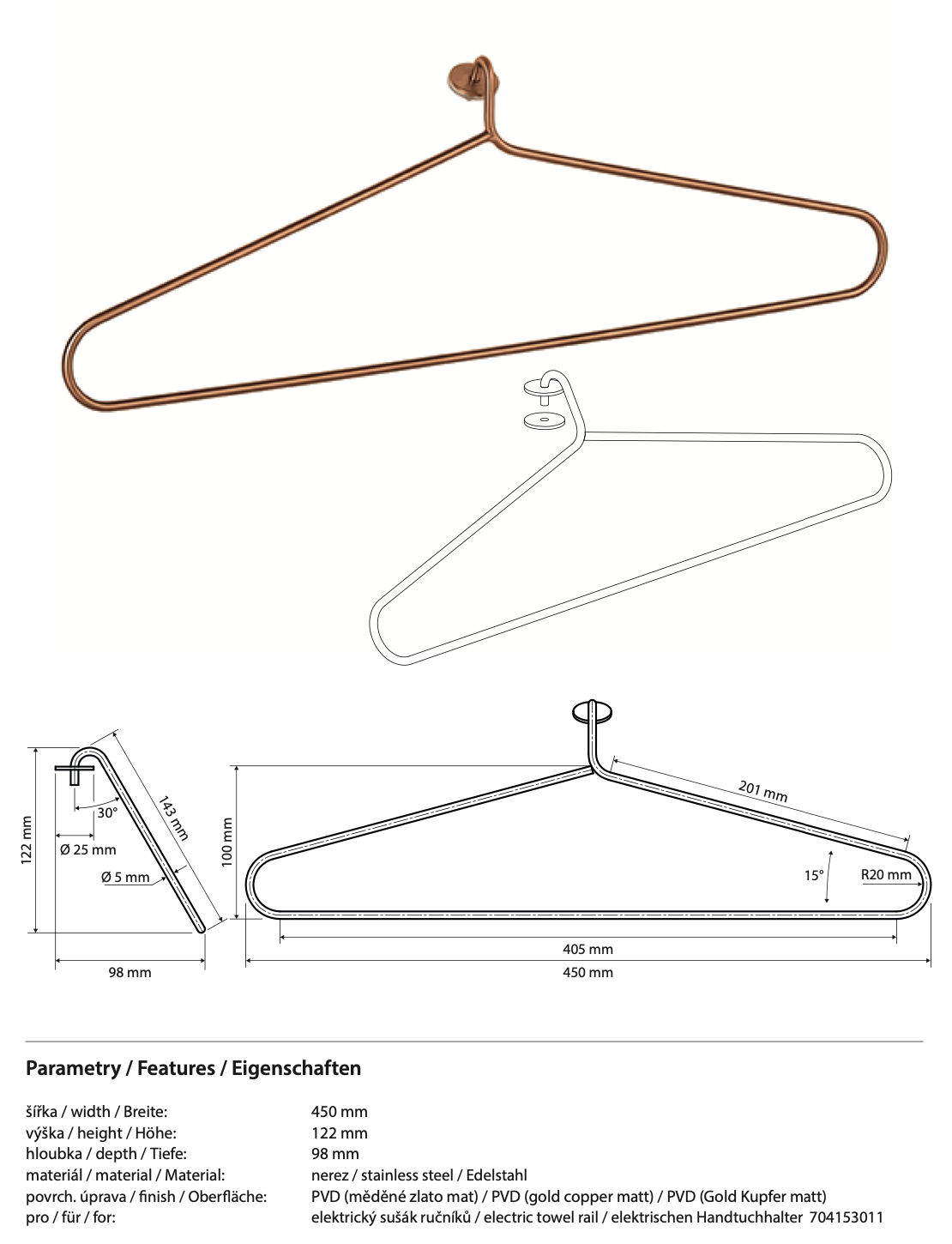 Support pour sèche-serviettes électrique, cuivre mat