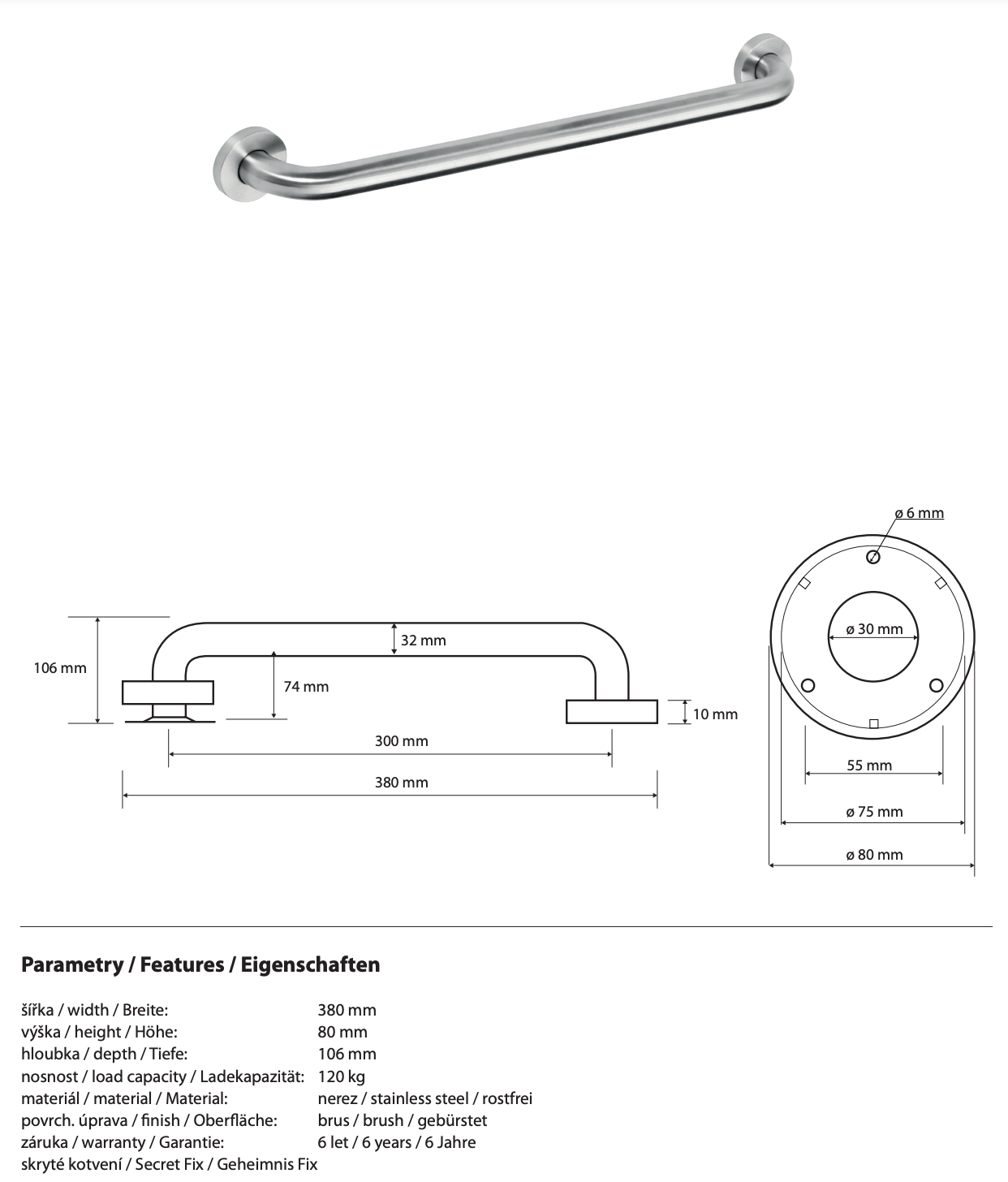 Bar tas-sigurtà tal-qabda 300mm