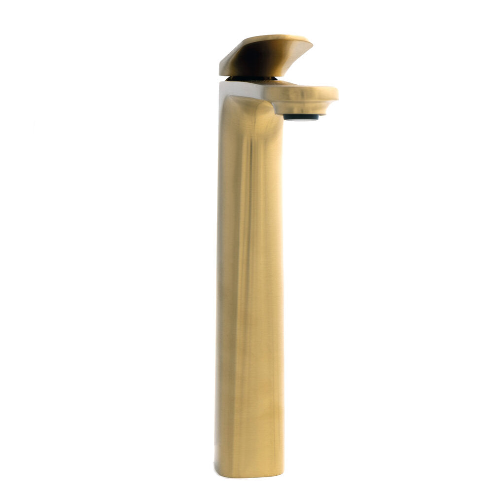 Mikser tas-sink twil deheb brushed minn Griferia Clever.